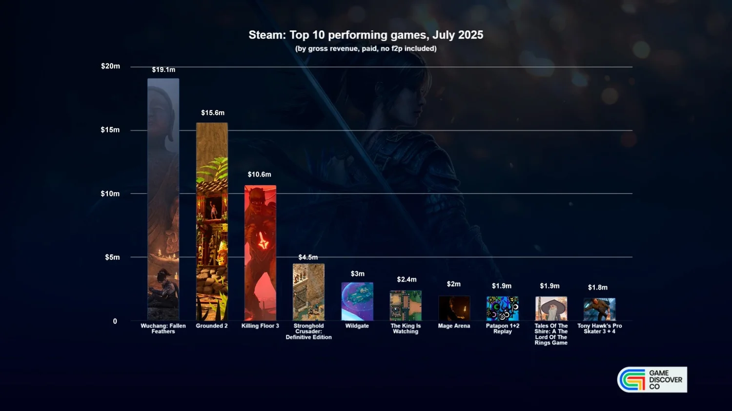 На первом месте — soulslike от китайцев для китайцев Wuchang: Fallen Feather, поскольку на этот регион припадает 82% всех продаж. Второе место досталось Grounded 2, причем, несмотря на Game Pass и ранний доступ, примерно 66% продажам обеспечили поклонники первой части. Дебют Killing Floor 3 был активным, но из-за неоправданных ожиданий сообщества продажи быстро снизились.