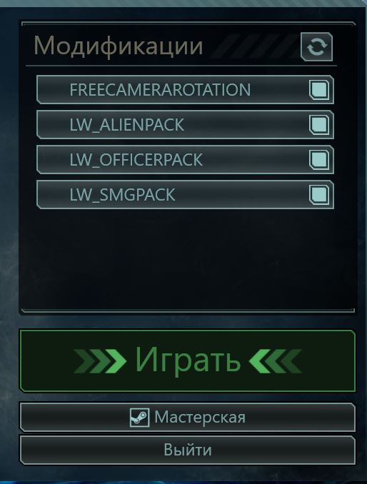 После этих действий после запуска игры у вас должен продублироваться тот же самый список модов в конфиге, лежащий по пути Пользователи\Документы\.... (ищите там папку ХСОМ2 и конфиг с похожим названием) - если в нем не будет таких записей (когда закрыли игру) - то продублируйте их сами (скопируйте - вставьте). Такая проблема как у вас может возникнуть из-за того что запускаете через лаунчер, который сбрасывает (изменяет по своему или просто держит в пустом виде) конфиг отвечающий в папке Пользователи\Документы (путь точный не помню)
