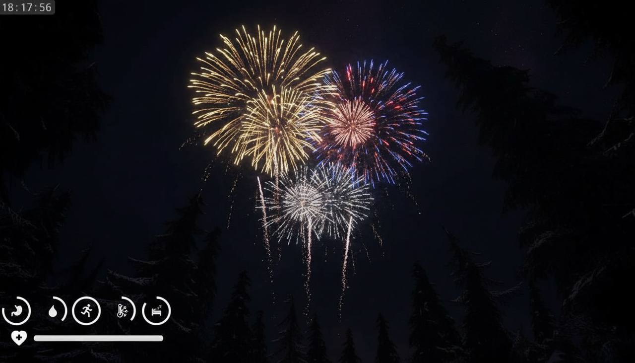 Трудно представить себе зимние каникулы без ярких огней. Фейерверк — это символ торжества, который мы привыкли видеть в небе каждую новогоднюю ночь. Но наша игра — это прежде всего про уединение и покой. А что, если добавить уютные бенгальские огни? Их можно было бы зажечь, стоя на крыльце хижины, и рисовать ими в воздухе, создавая свою магию.